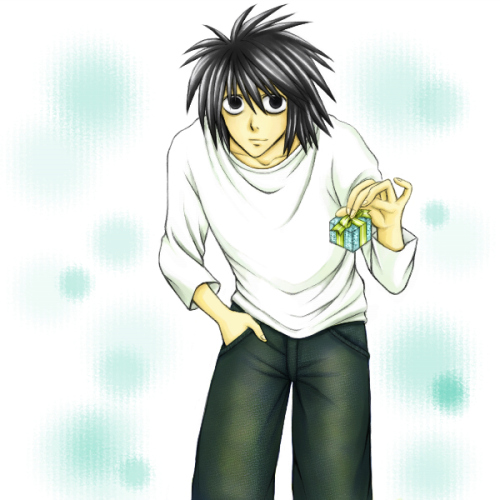 小さなプレゼントの箱を持ったLを描いてみました♪
